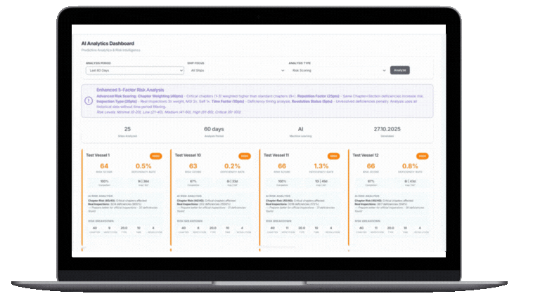 The integrated, AI-powered platform that makes your fleet operations safer, smarter, and more efficient. Stop managing disconnected systems; move to a single, intelligent hub for inspections, training, and task management. SIRE 2.0 inspection software automates reporting and improves compliance with OCIMF standards.